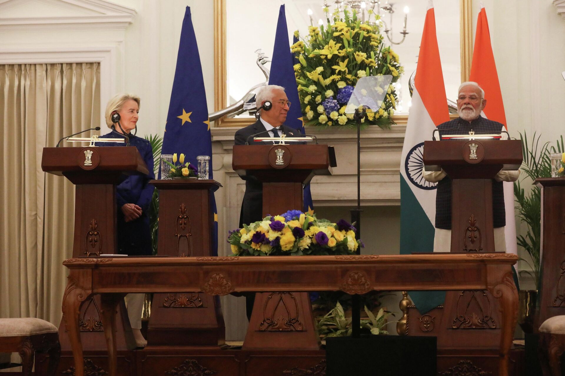 Hindistan Başbakanı Narendra Modi, AB önderleri Costa ve Ursula von Der Leyen ile bugün yapılan görüşmelerin akabinde yapılan ortak basın toplantısında Hindistan ve Avrupa Birliği‘nin, ABD ile istikrarsız alakalara karşı tedbir almak gayesiyle ‘tarihi bir ticaret anlaşmasını’ sonuçlandırdığını söyledi.